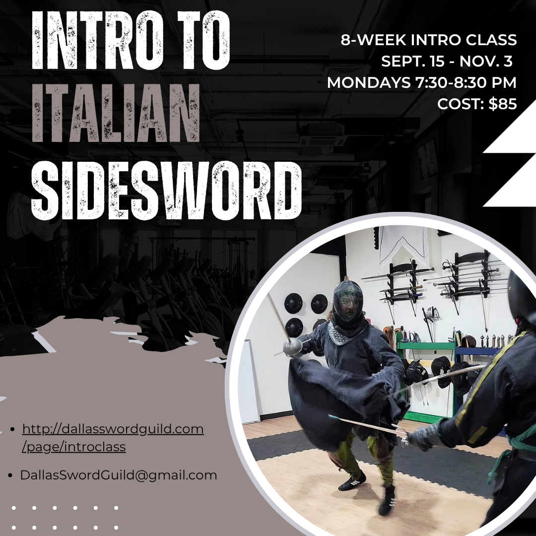 This is an 8 week introductory class about a style of single handed sword fencing from Renaissance Italy, commonly called the Bolognese Tradition. This class will cover the basics of fencing, footwork, defense, and tactics commonly used in the system and is open to all levels of experience.
